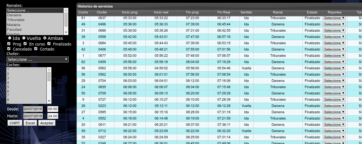 Administración de ramales, recorridos, secciones, cabeceras de despacho, terminales y paradas.